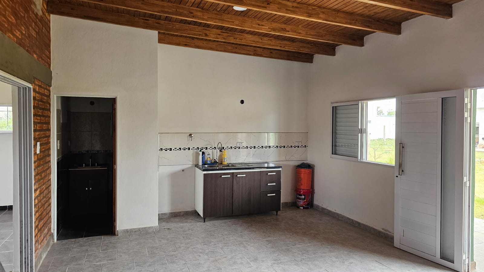 Cocina/comedor, living (posibilidad de realizar 2 dormitorios), baño amplio, galería con parrilla y cochera